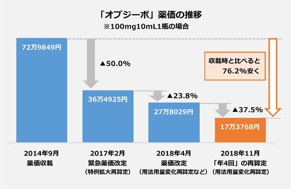 オプジーボが年間3500万円かかるという古い情報が一部で流れていますが それは古すぎる価格なのでデマです オプジーボで治療 森元首相 もっと多くの がんに採用を とnhkニュースも伝える Togetter